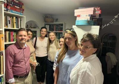 Kalbėjomės įvairiais klausimais – nuo rimtesnių temų iki kasdienių dalykų, kurie svarbūs gyvenant svetur. Buvo įdomu girdėti skirtingas patirtis, nuomones ir įsitraukti į atvirą pokalbį.