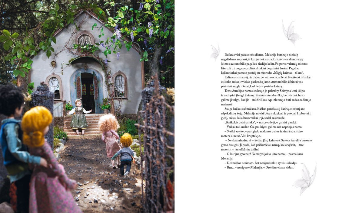 Pasakų knyga apie fėjas, nykštukus, elfus ir Miglų slėnį. Knyga iliustruota nuotraukomis, kuriose visi personažai ir dekoracijos yra Editos Lei rankų darbo kūriniai.